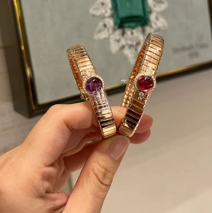 BGL-BR860021条纹卷卷蛇手镯圆形包镶彩宝