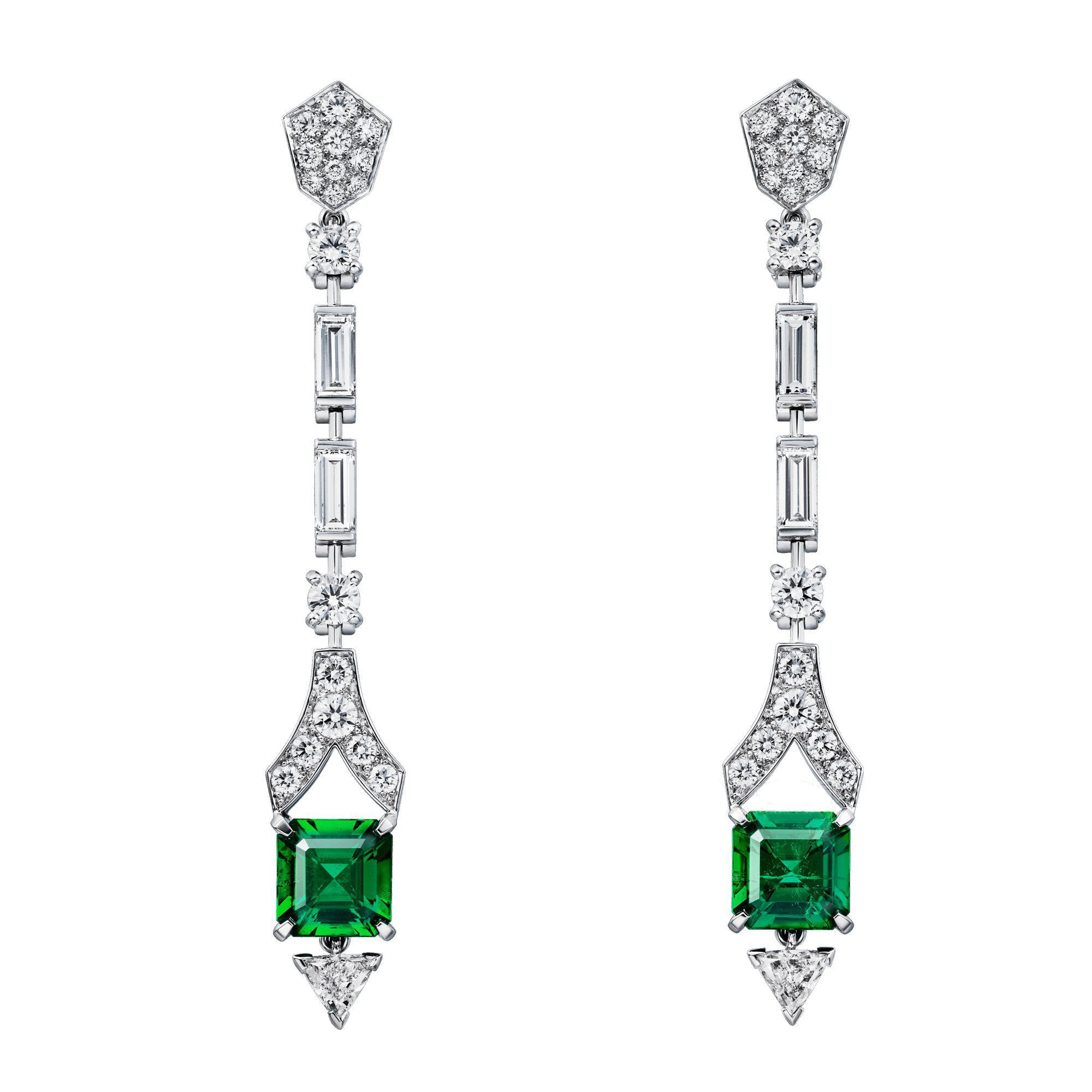 KDY-130136枕形祖母绿三角钻梯方长款耳拍夹