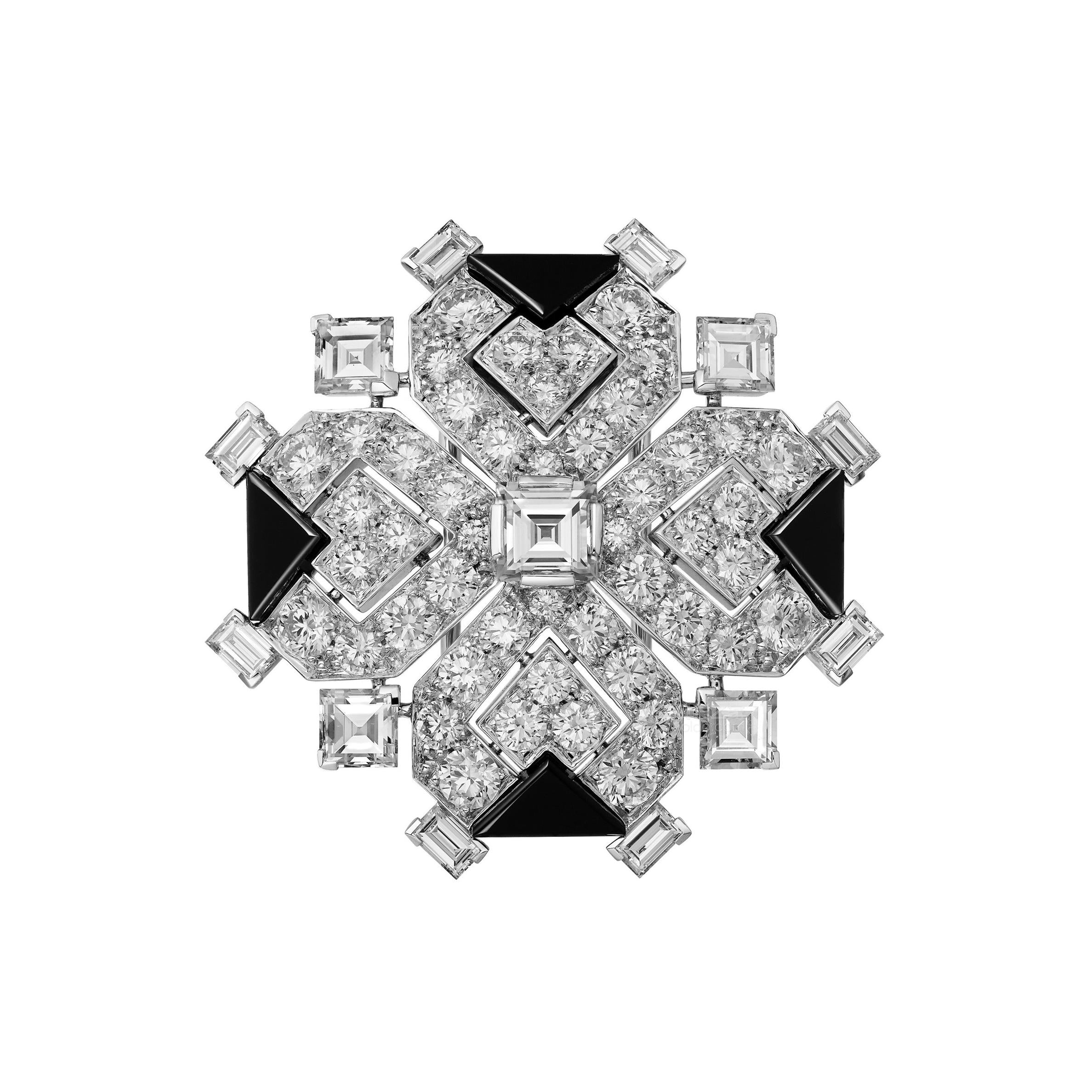 KDY-H5000057宽30mm几何黑玛瑙异形钻钻石胸针