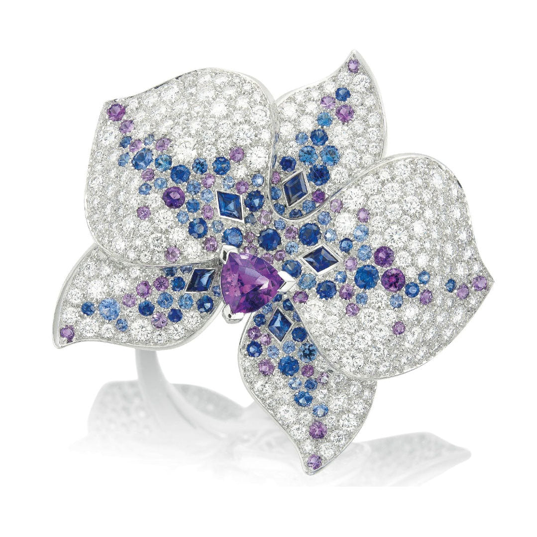 特征花叶植物,搭配彩宝异钻,密钻