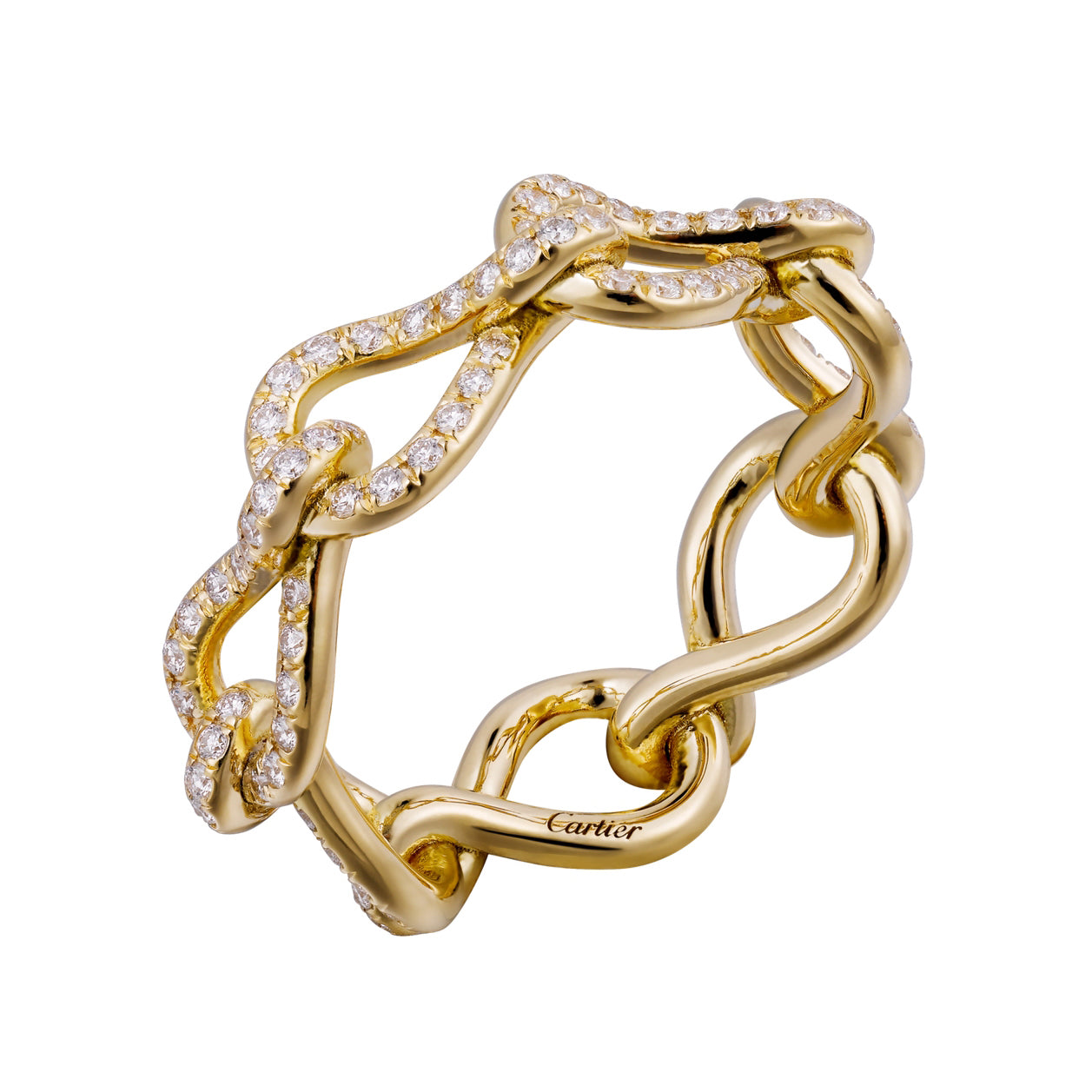 戒臂细分宽面镂空臂,交织直臂