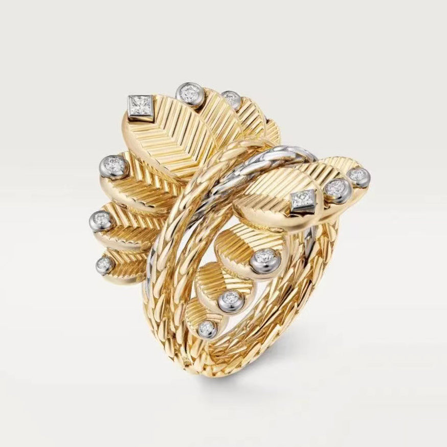 特征花叶植物,扭绳/螺旋,搭配彩宝异钻,分色
